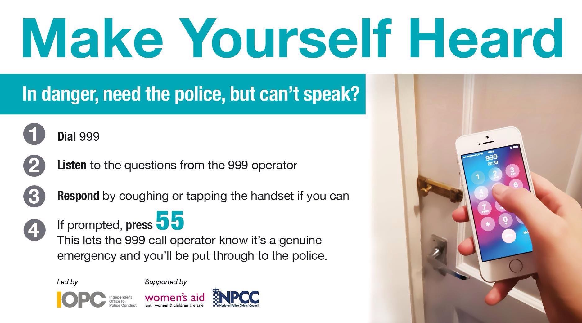 Do you know how to alert the police if you are in imminent danger but need to keep quiet? A new campaign explains how you can make yourself heard