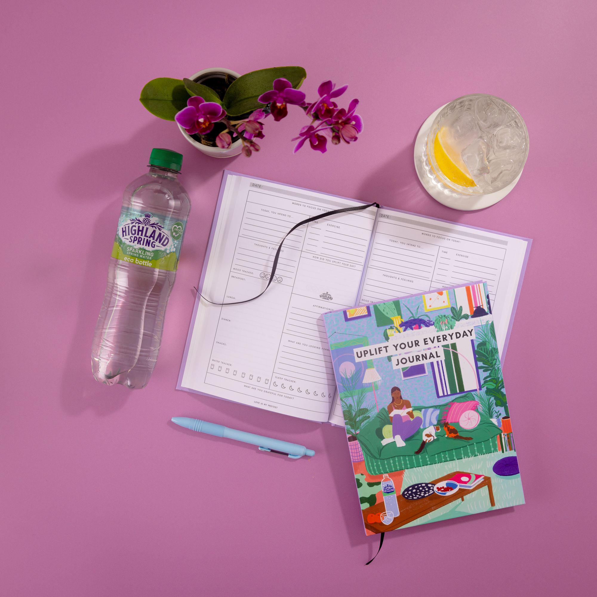 Highland Spring sparkling water has partnered with positivity artist, Katie Smith to create the ‘Uplift Your Everyday’ journal, in consultation with Positive Psychology Expert Sophie Cliff. The limited-edition journal is available to buy from Love is my Protest and comes hand in hand with a bottle of sparkling water to uplift everyday moments.